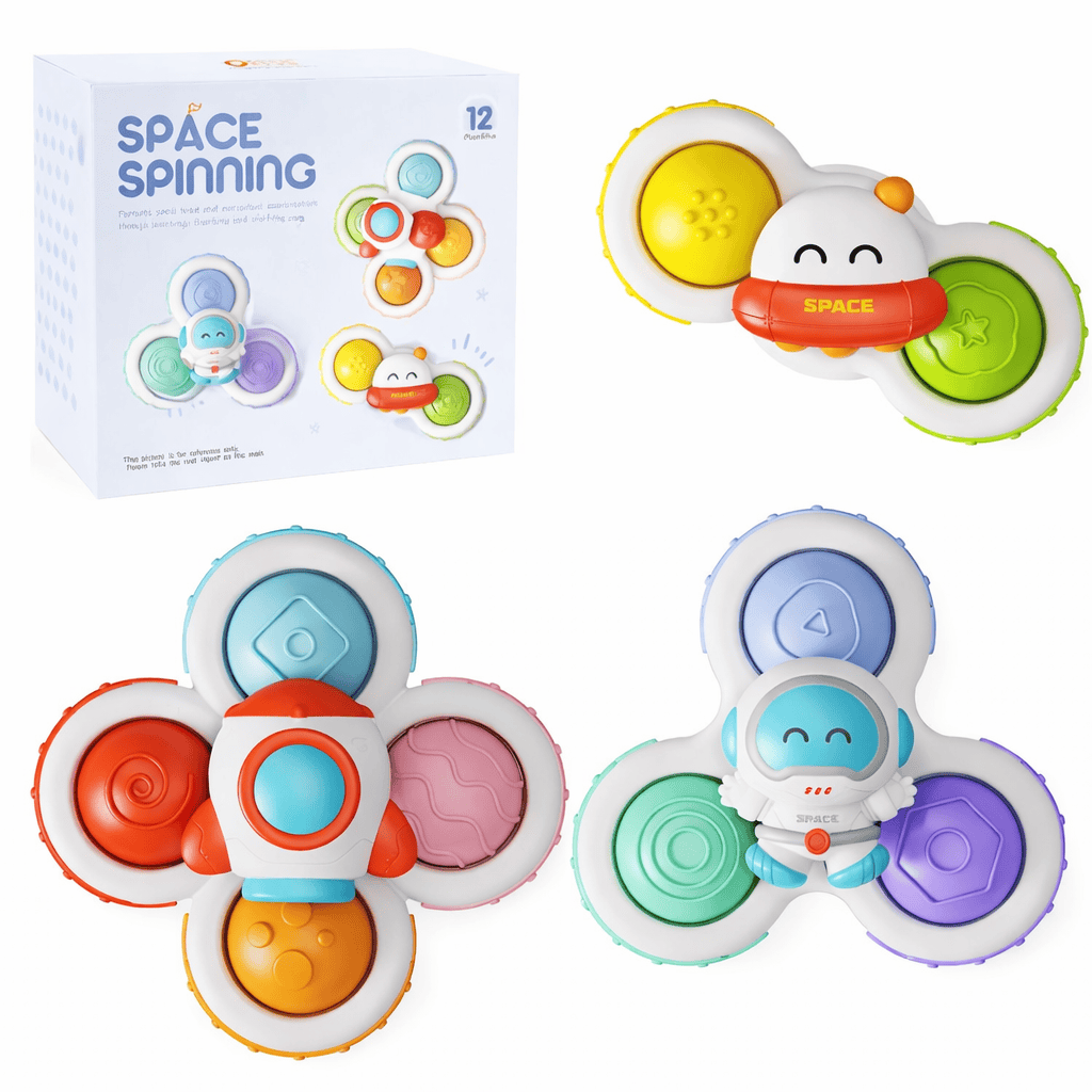 De set bestaat uit drie kleurrijke spinners met een speels ruimte design (astronaut, ruimteschip en ufo). Dankzij de combinatie van draaien (spinner) en drukken (pop it) biedt dit speelgoed extra variatie en uitdaging, waardoor kinderen langer geboeid blijven.