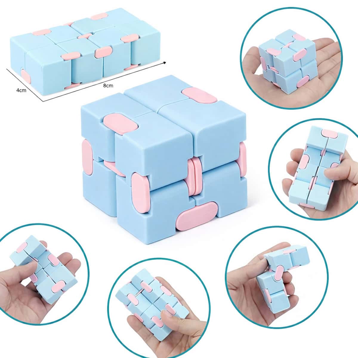 Houd je handen actief tijdens werk, studie of ontspanning met deze Infinity Cube set in zachte pastelkleuren: roze, blauw en groen. Dankzij het compacte, opvouwbare ontwerp neem je de cubes gemakkelijk mee in je tas, jaszak of bureaulade, waardoor ze ideaal zijn voor thuis, op kantoor of onderweg.